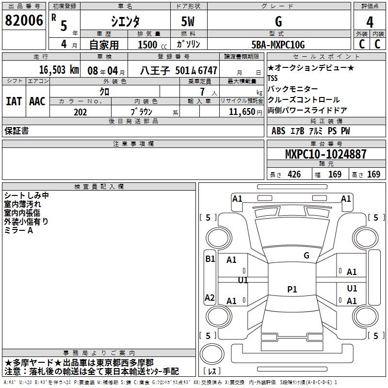 TOYOTA SIENTA G - лот 82006