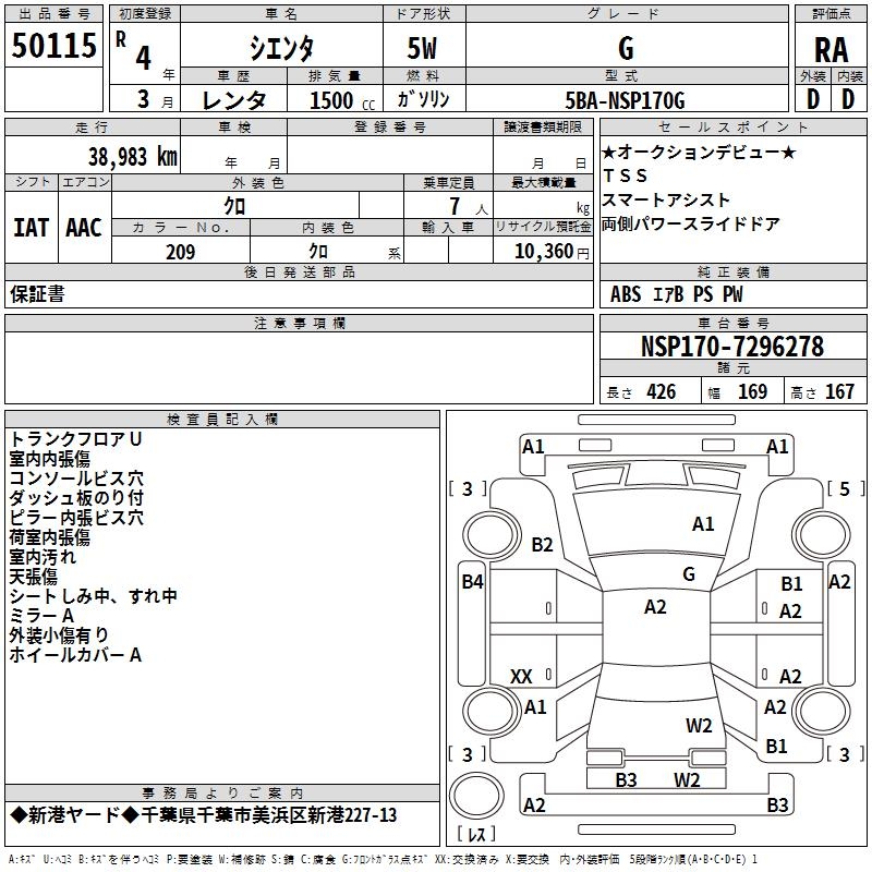 TOYOTA SIENTA G - лот 50115