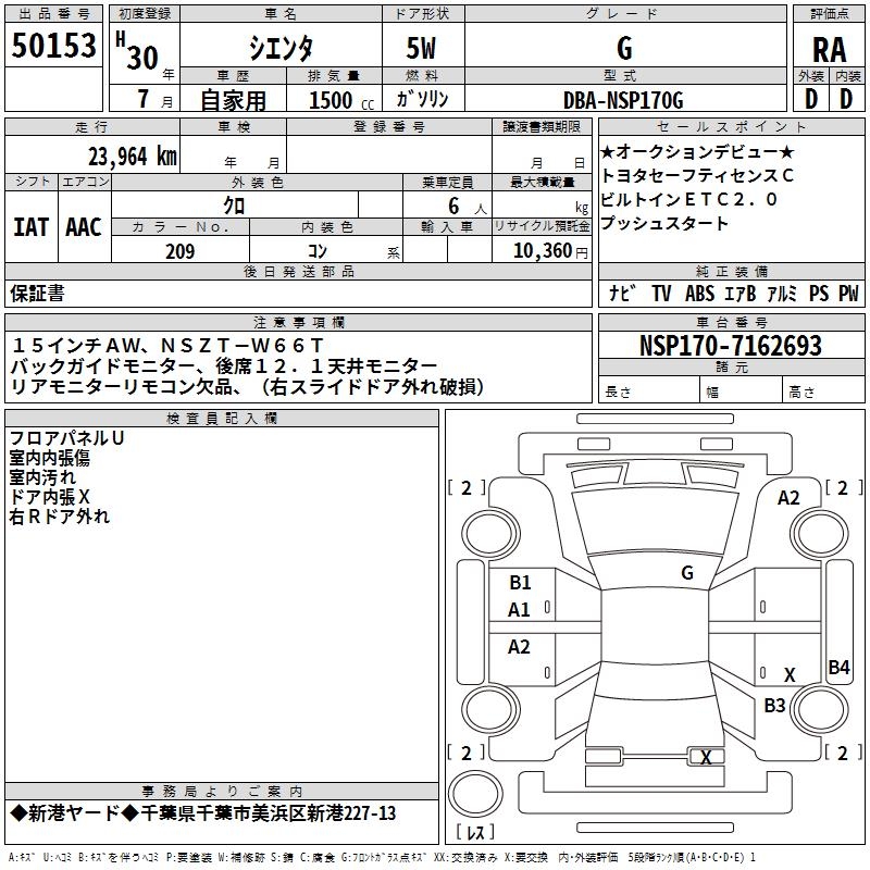 TOYOTA SIENTA G - лот 50153