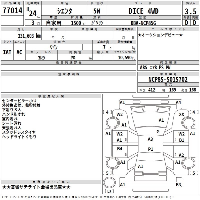 TOYOTA SIENTA DICE 4WD - лот 77014