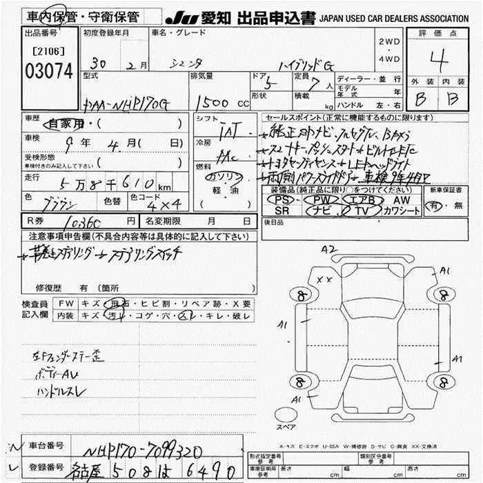 TOYOTA SIENTA HYBRID G - лот 3074