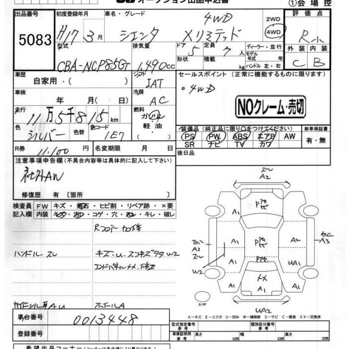 TOYOTA SIENTA 4WD X LTD - лот 5083