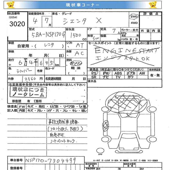 TOYOTA SIENTA X - лот 3020