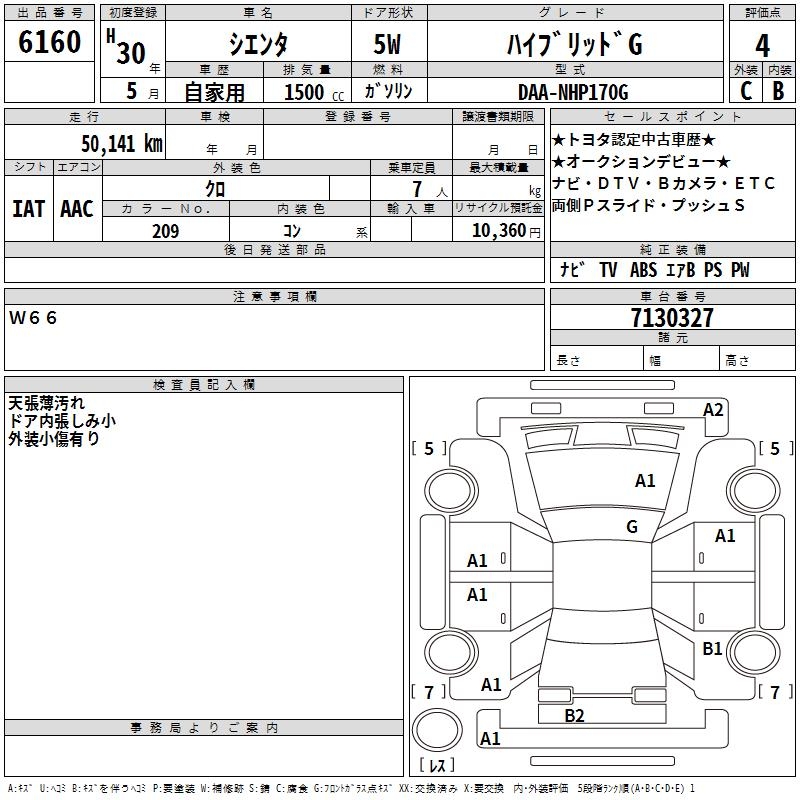 TOYOTA SIENTA HYBRID G - лот 6160