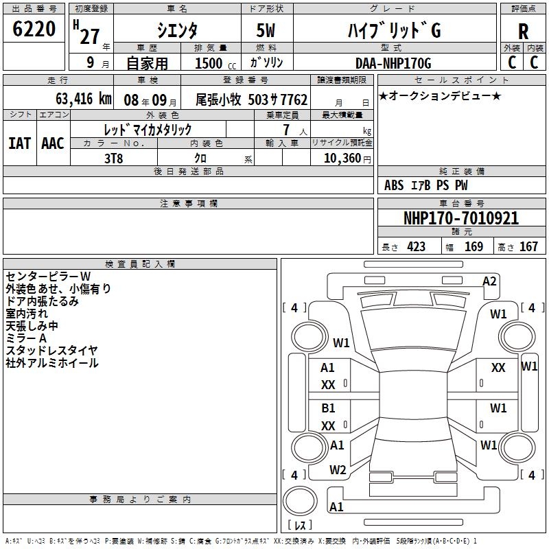 TOYOTA SIENTA HYBRID G - лот 6220