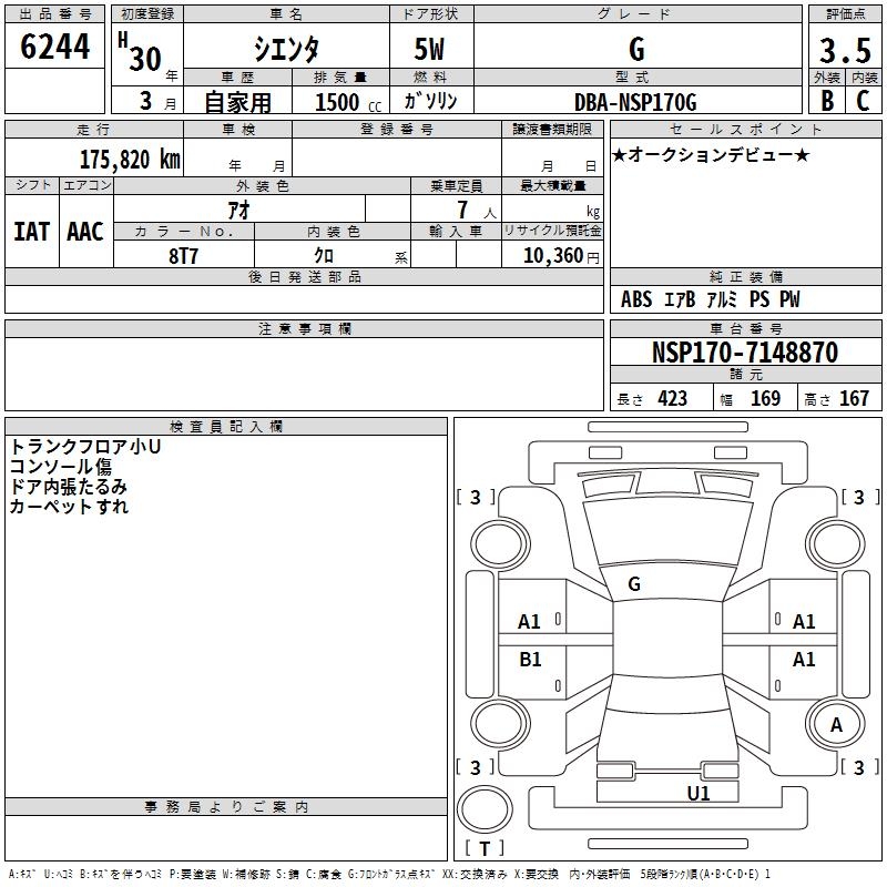 TOYOTA SIENTA G - лот 6244