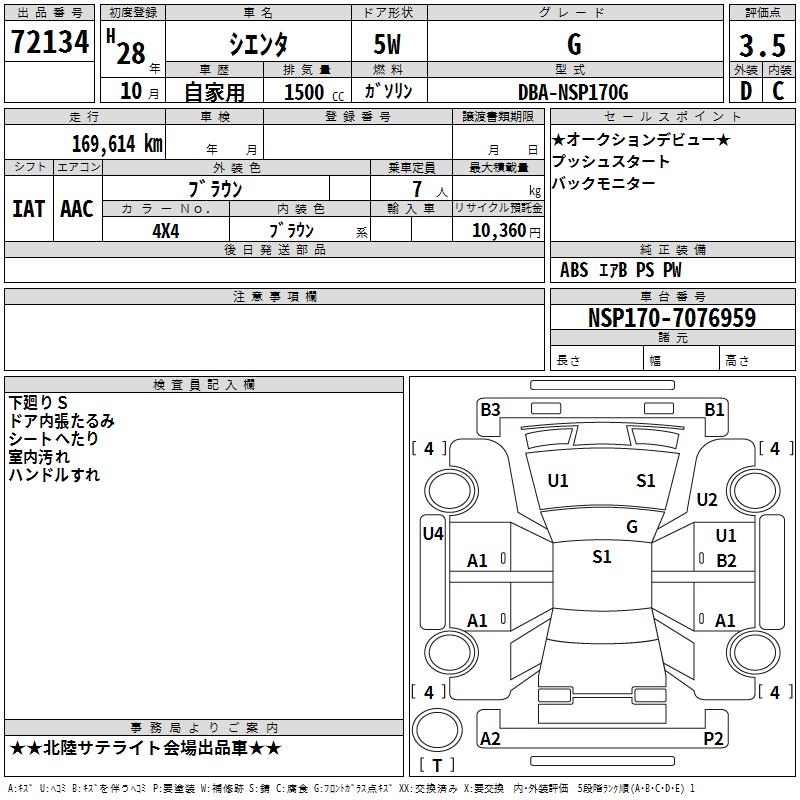 TOYOTA SIENTA G - лот 72134