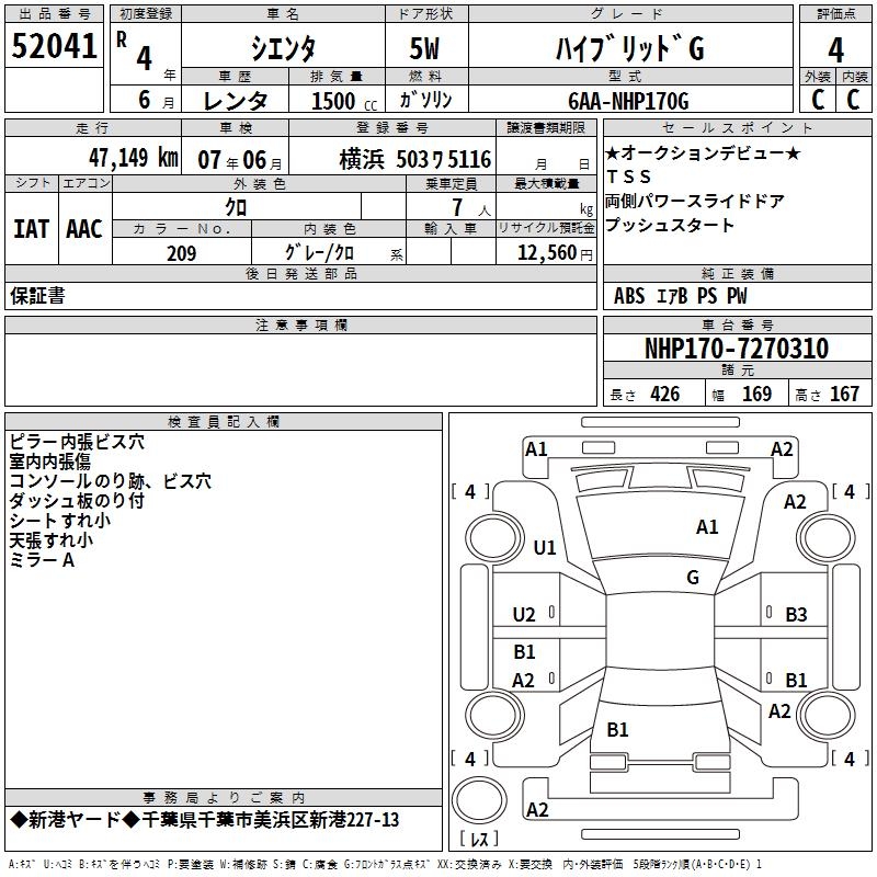 TOYOTA SIENTA HYBRID G - лот 52041