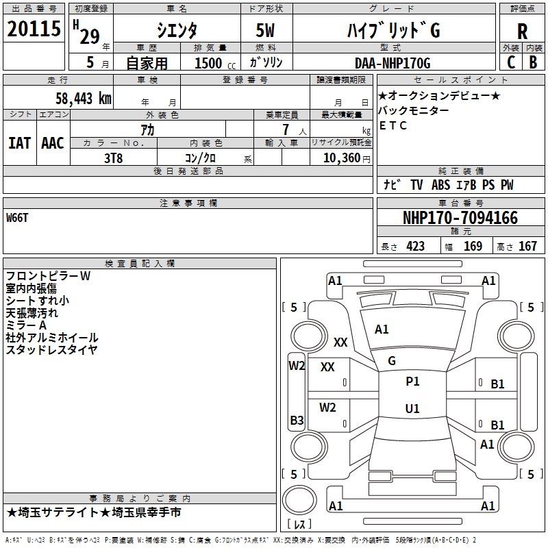 TOYOTA SIENTA HYBRID G - лот 20115