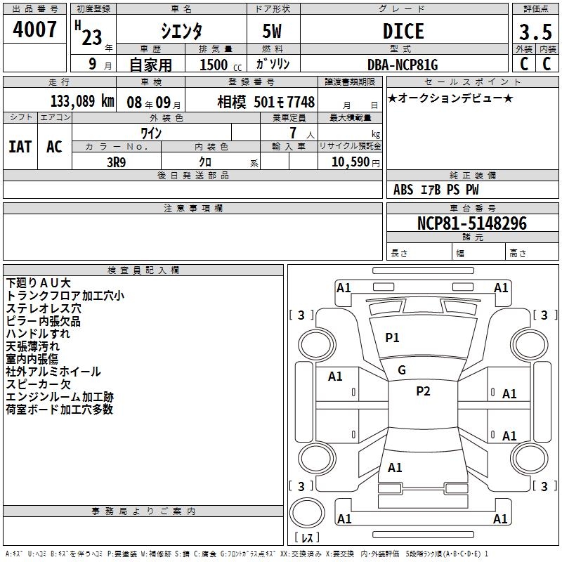 TOYOTA SIENTA DICE - лот 4007