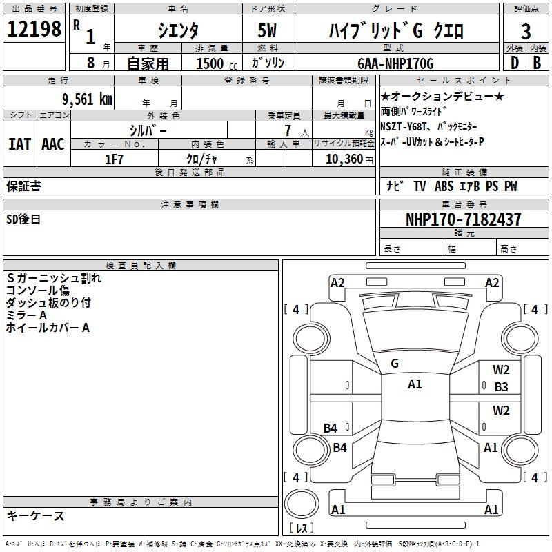 TOYOTA SIENTA HYBRID GKERO - лот 12198