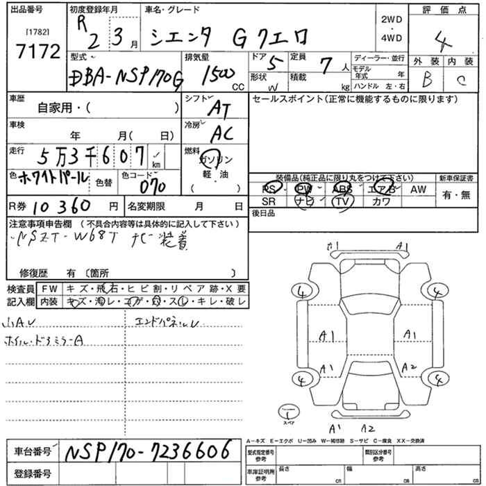 TOYOTA SIENTA GKERO - лот 7172