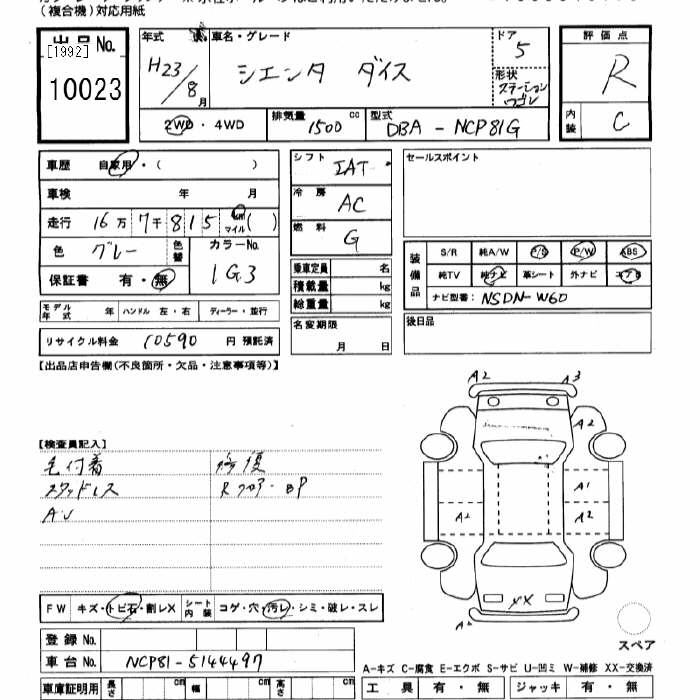 TOYOTA SIENTA DICE - лот 10023