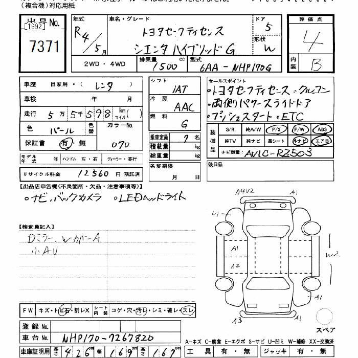 TOYOTA SIENTA HYBRID G TOYOTA SAFETY SENS - лот 7371