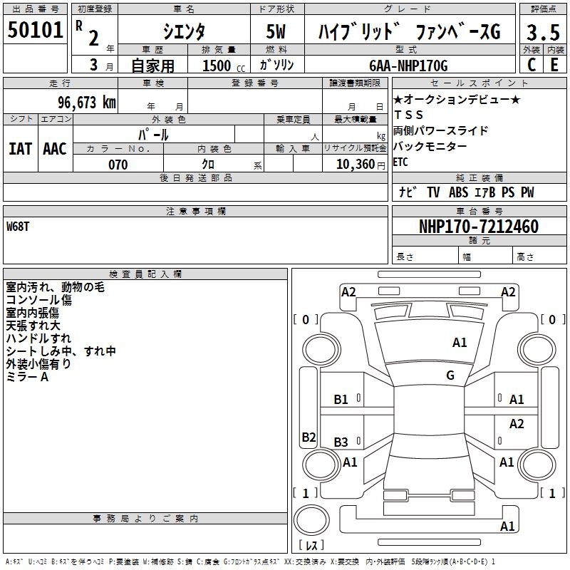 TOYOTA SIENTA HYBRID FAN BASE G - лот 50101