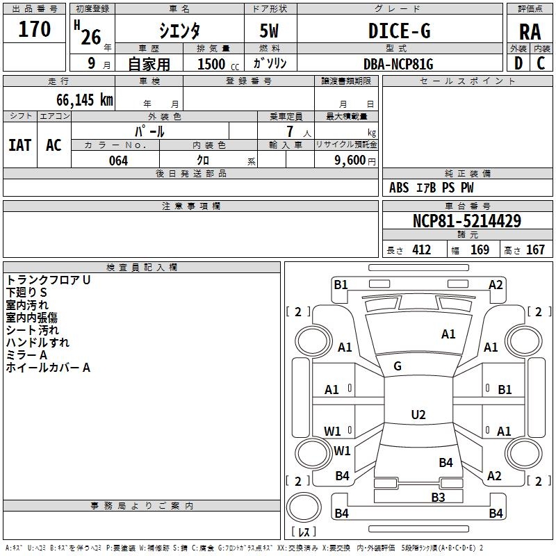 TOYOTA SIENTA DICE-G - лот 170