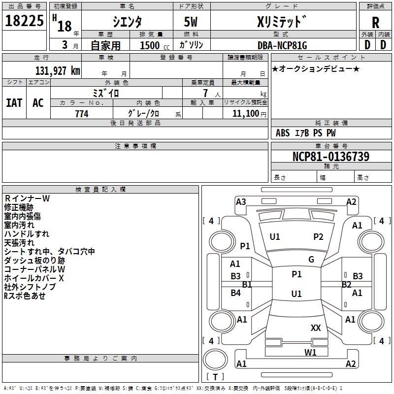 TOYOTA SIENTA X LIMITED - лот 18225