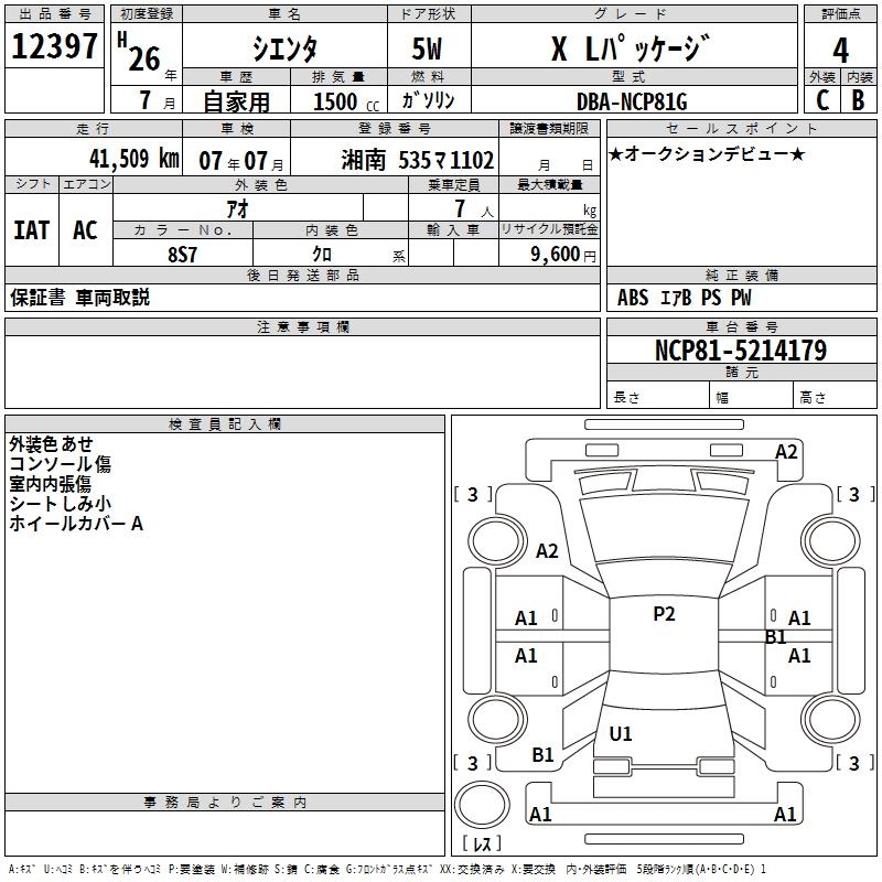 TOYOTA SIENTA X L PACKAGE - лот 12397
