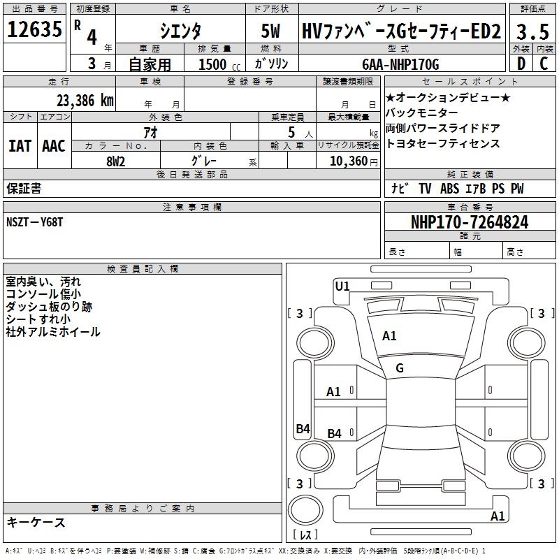 TOYOTA SIENTA HV FAN BASE G SAFETY -ED2 - лот 12635