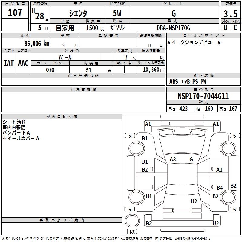 TOYOTA SIENTA G - лот 107