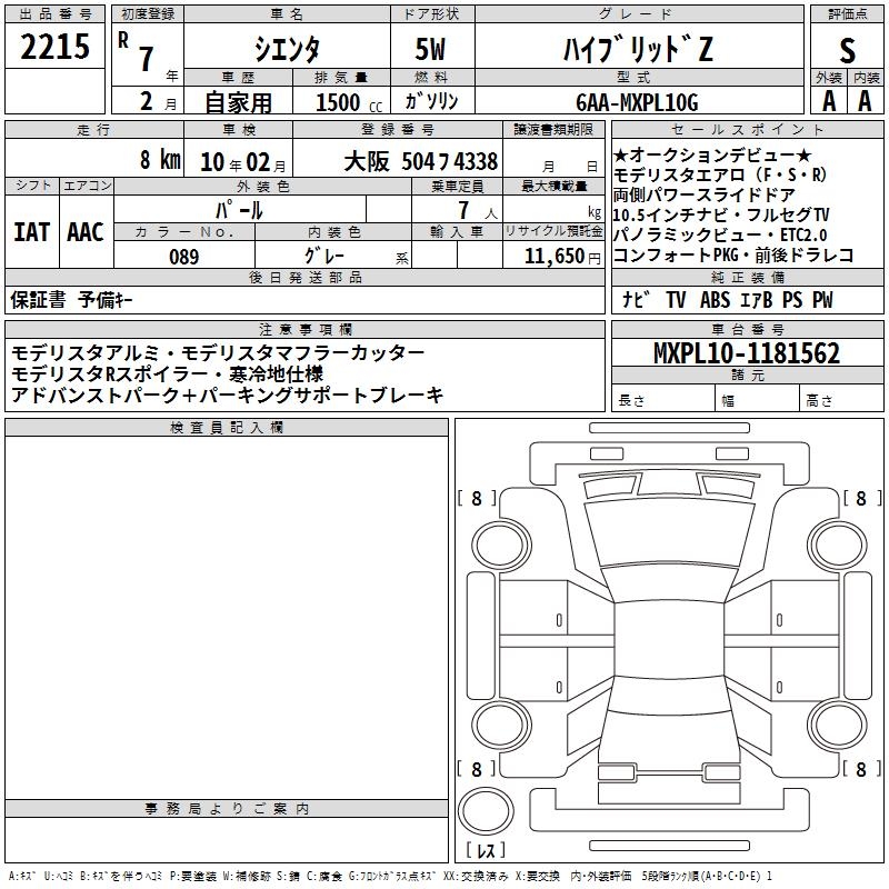 TOYOTA SIENTA HYBRID Z - лот 2215