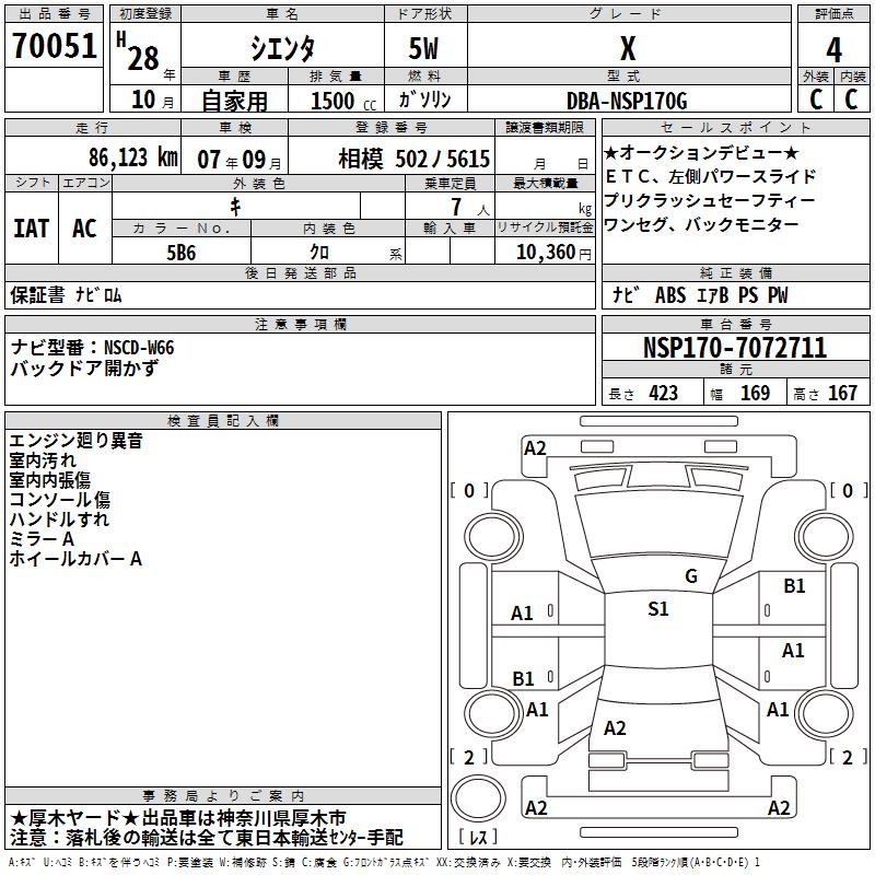 • Кузов: NSP170G