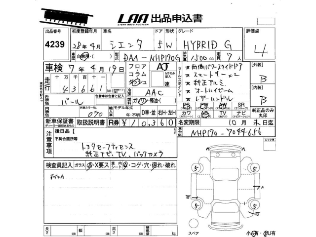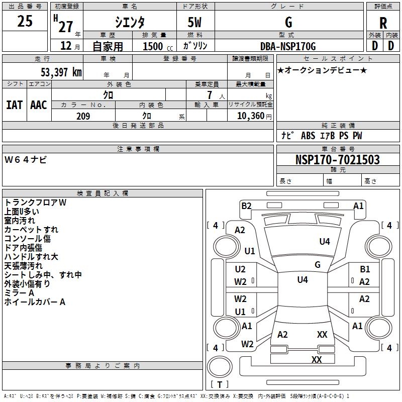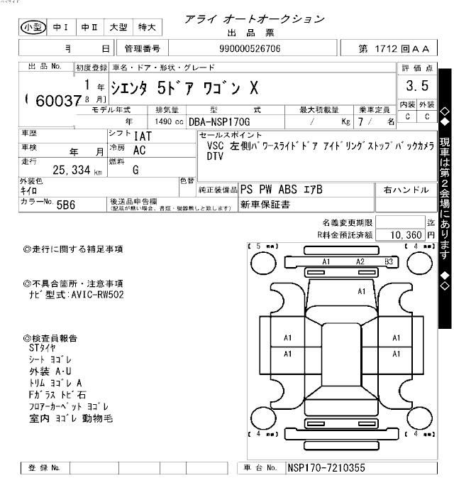 Статистика продаж TOYOTA SIENTA с аукционов Японии