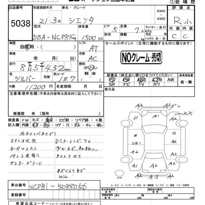 • Кузов: DBA-NCP81G