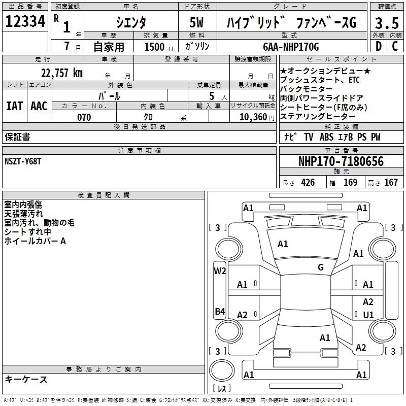 Статистика продаж TOYOTA SIENTA с аукционов Японии