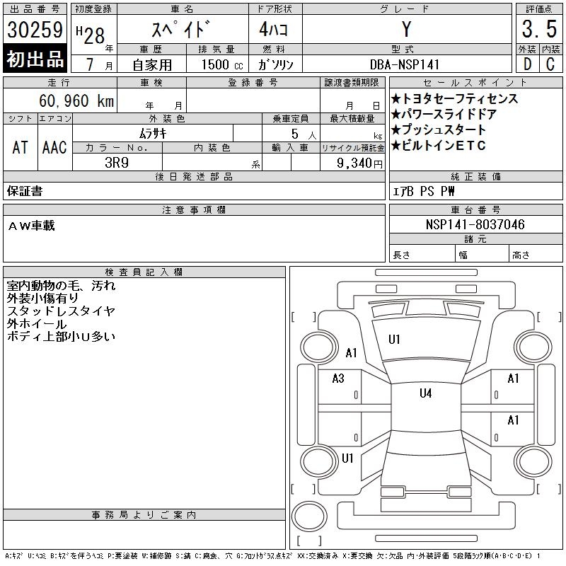 TOYOTA SPADE Y - лот 30259