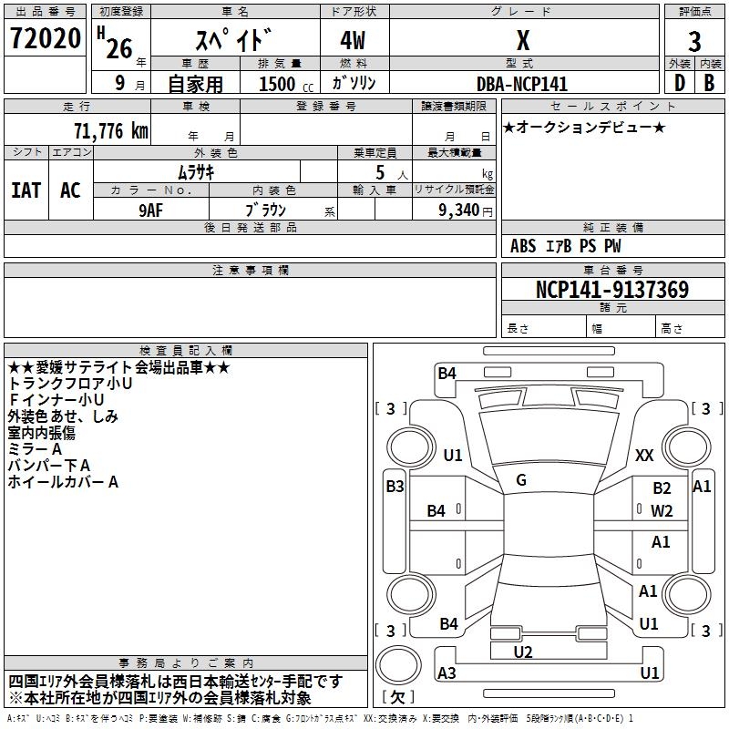 TOYOTA SPADE X - лот 72020