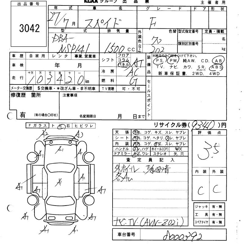 TOYOTA SPADE F - лот 3042
