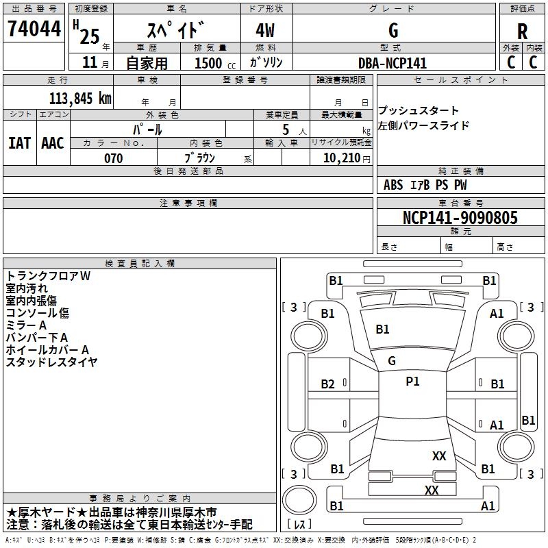TOYOTA SPADE G - лот 74044
