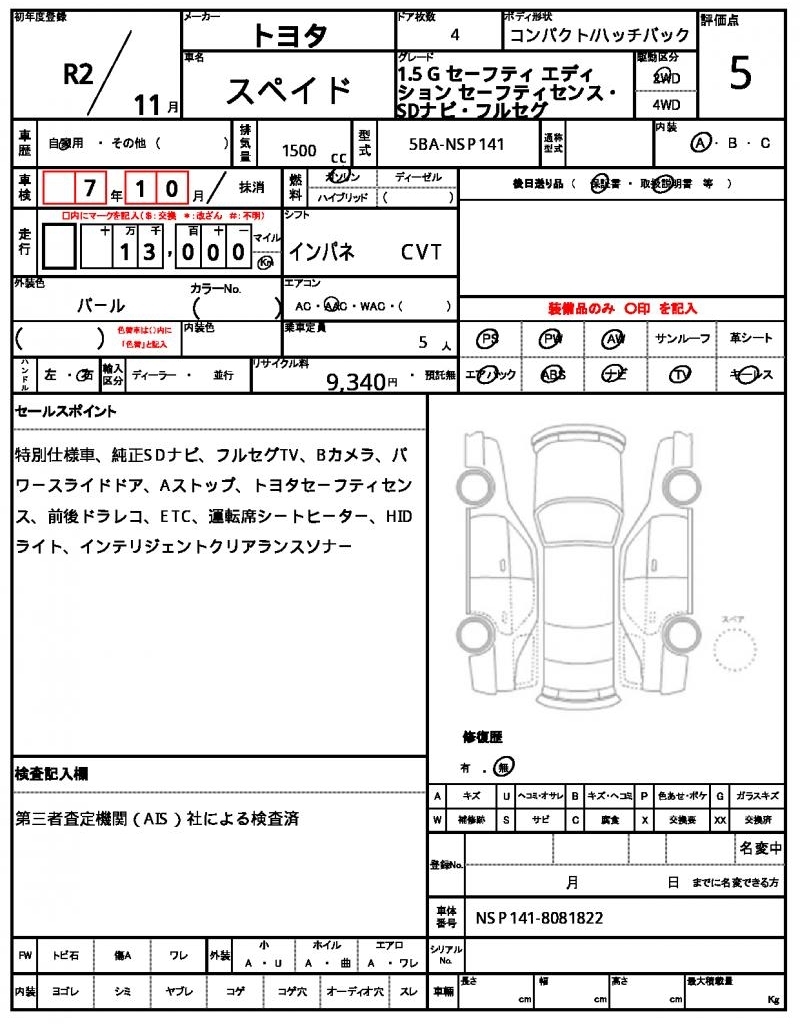TOYOTA SPADE - лот 59720