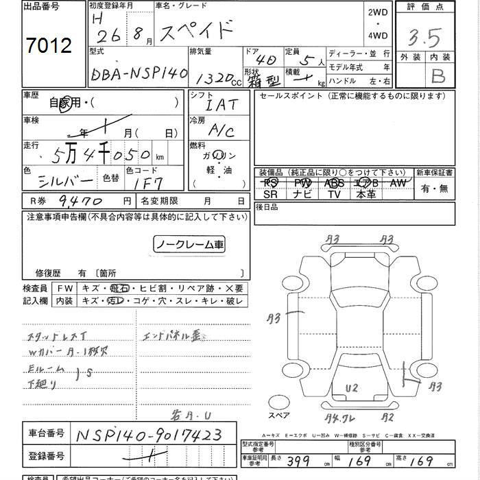 TOYOTA SPADE - лот 7012