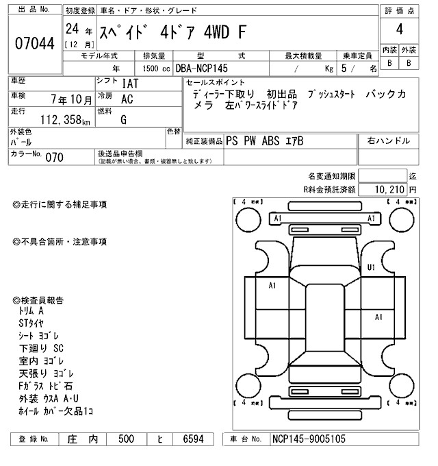 TOYOTA SPADE F - лот 7044
