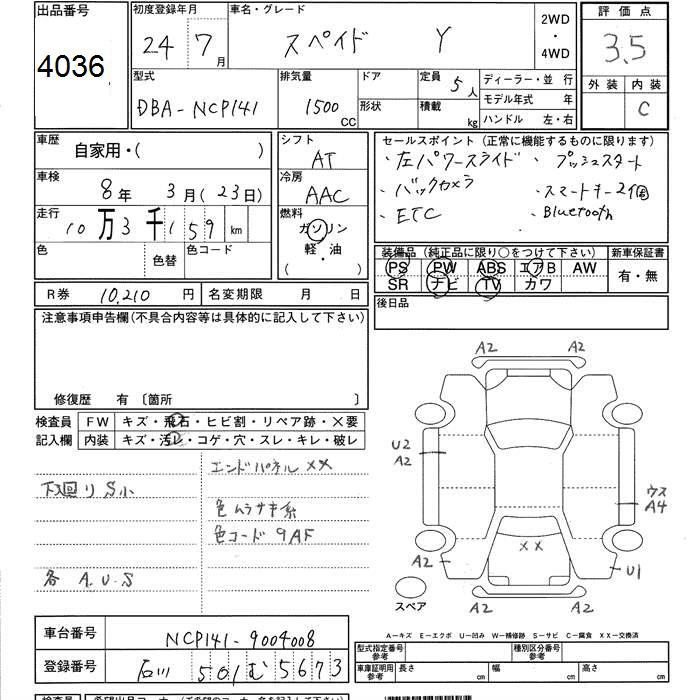 TOYOTA SPADE Y - лот 4036