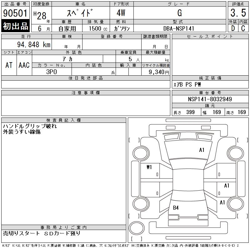TOYOTA SPADE G - лот 90501