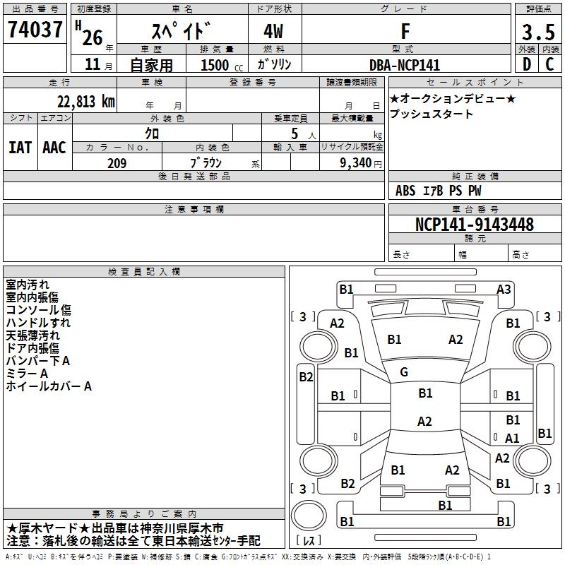 TOYOTA SPADE F - лот 74037