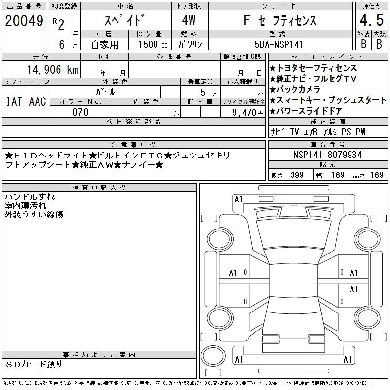 TOYOTA SPADE F SAFETY SENS - лот 20049