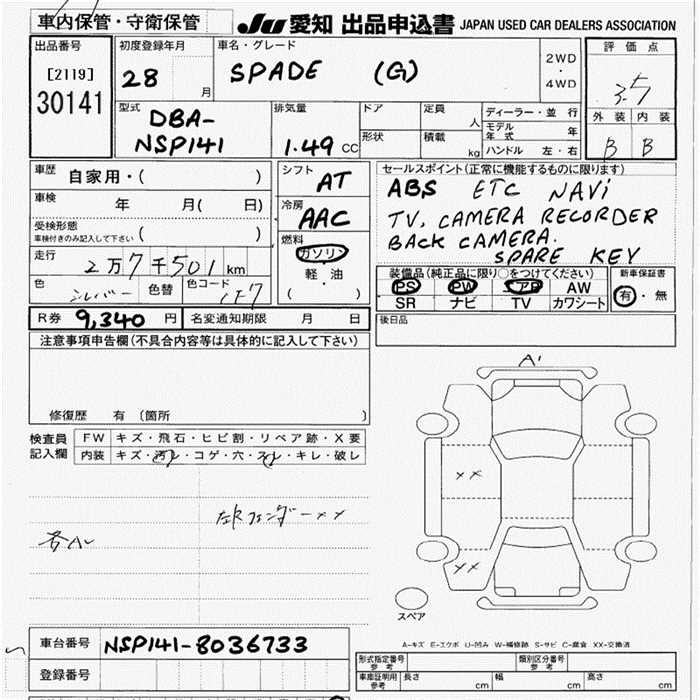 TOYOTA SPADE G - лот 30141