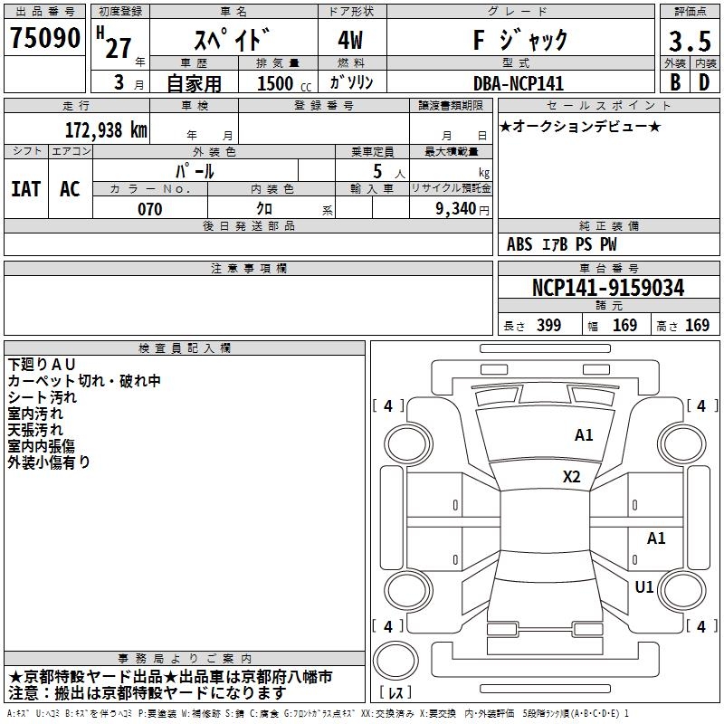 TOYOTA SPADE F JACK - лот 75090