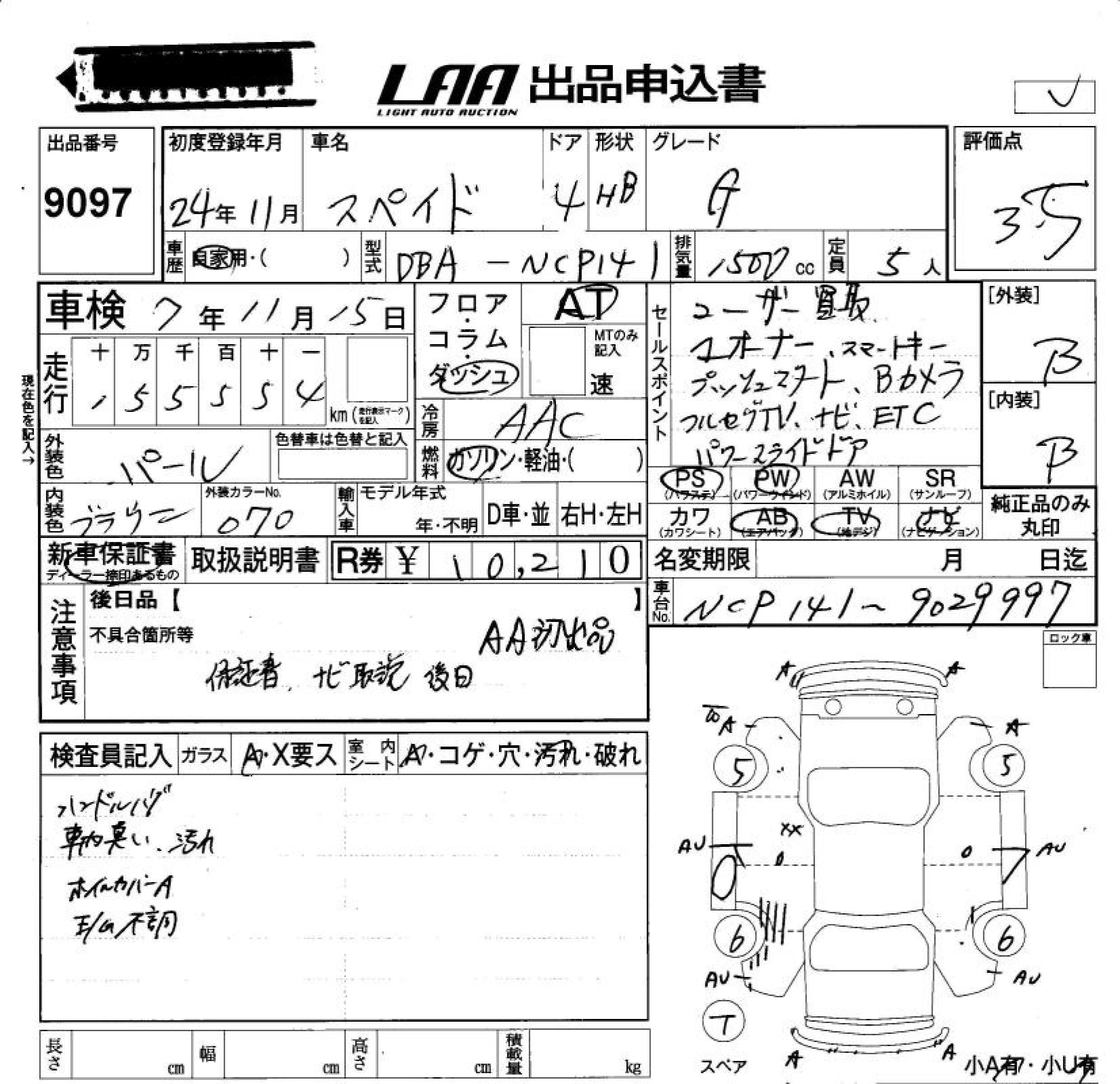 TOYOTA SPADE G - лот 9097