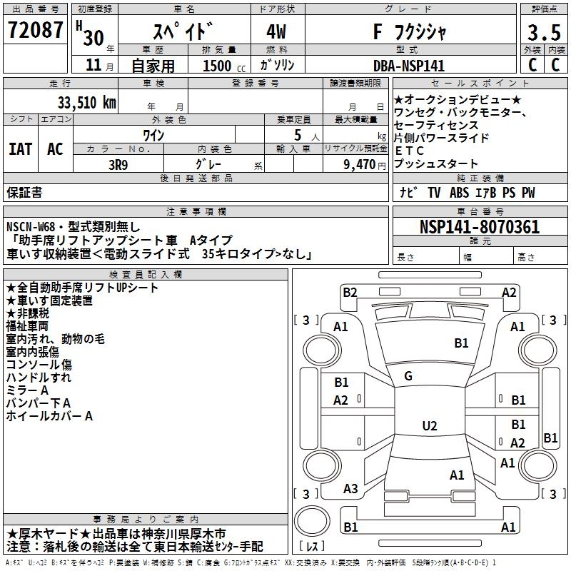 TOYOTA SPADE F WELLFARE CAR - лот 72087