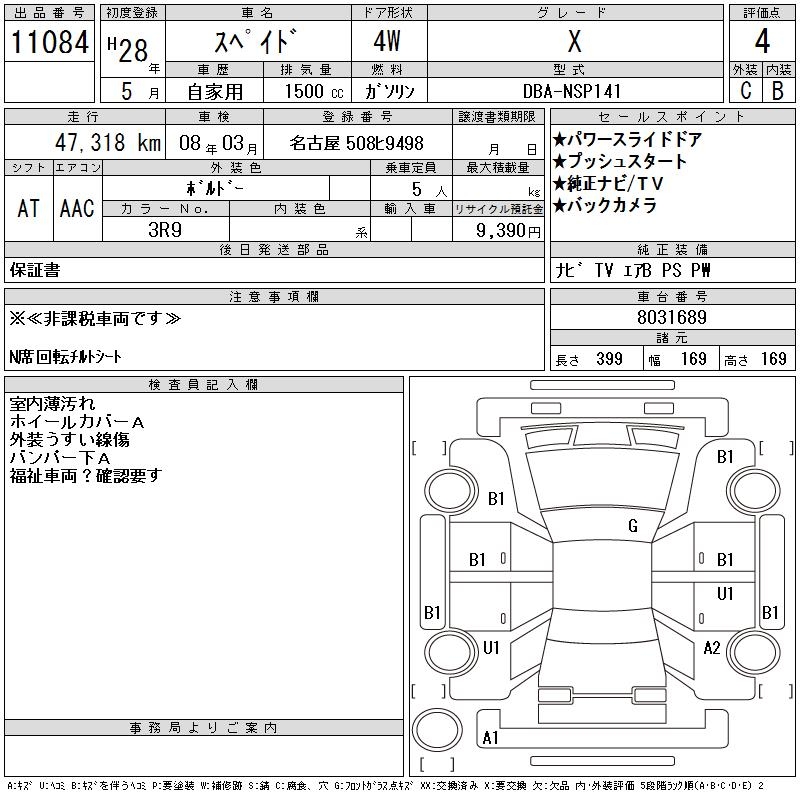 TOYOTA SPADE X - лот 11084