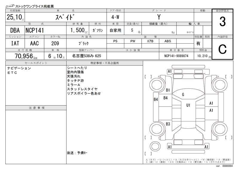 TOYOTA SPADE - лот 1042