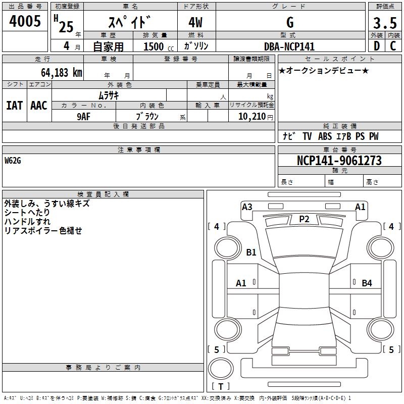 TOYOTA SPADE G - лот 4005