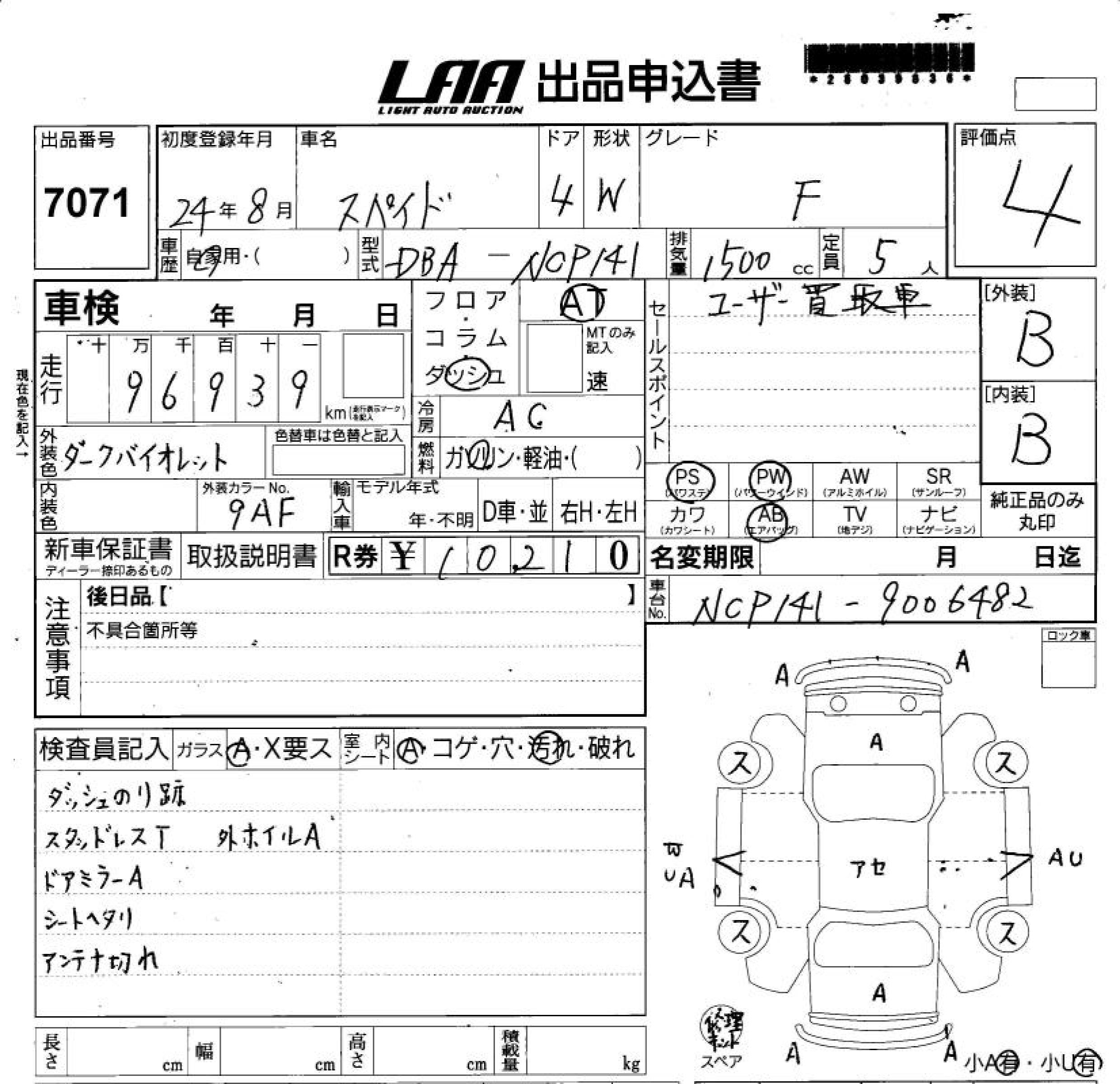 TOYOTA SPADE F - лот 7071