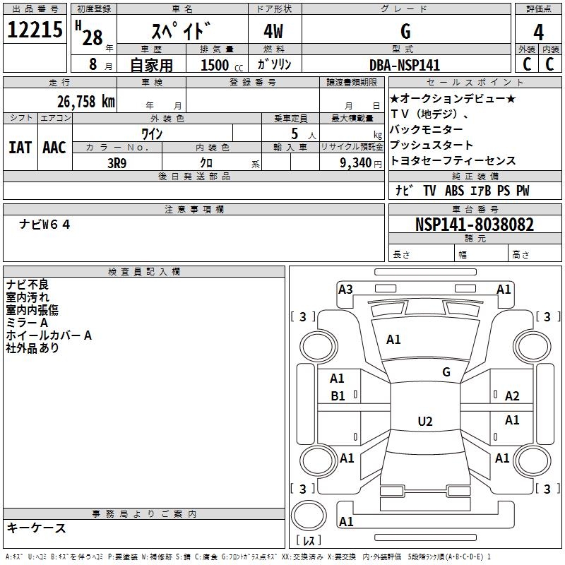 TOYOTA SPADE G - лот 12215