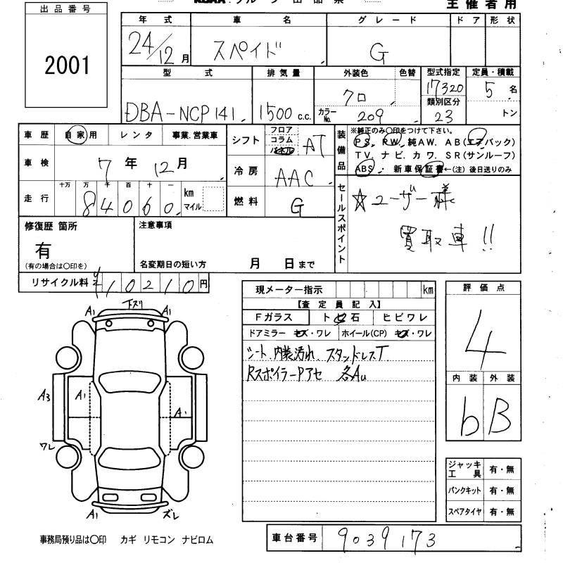 TOYOTA SPADE G - лот 2001